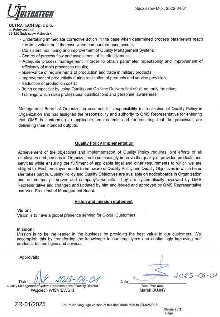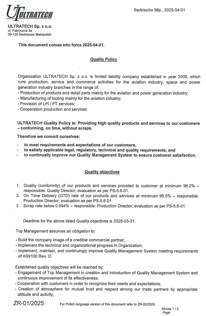 - • Being competitive by using Quality and On-Time Delivery first of all, not only the price.